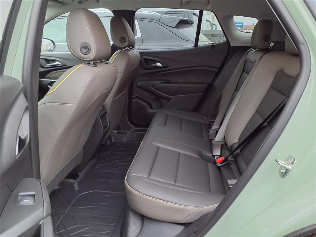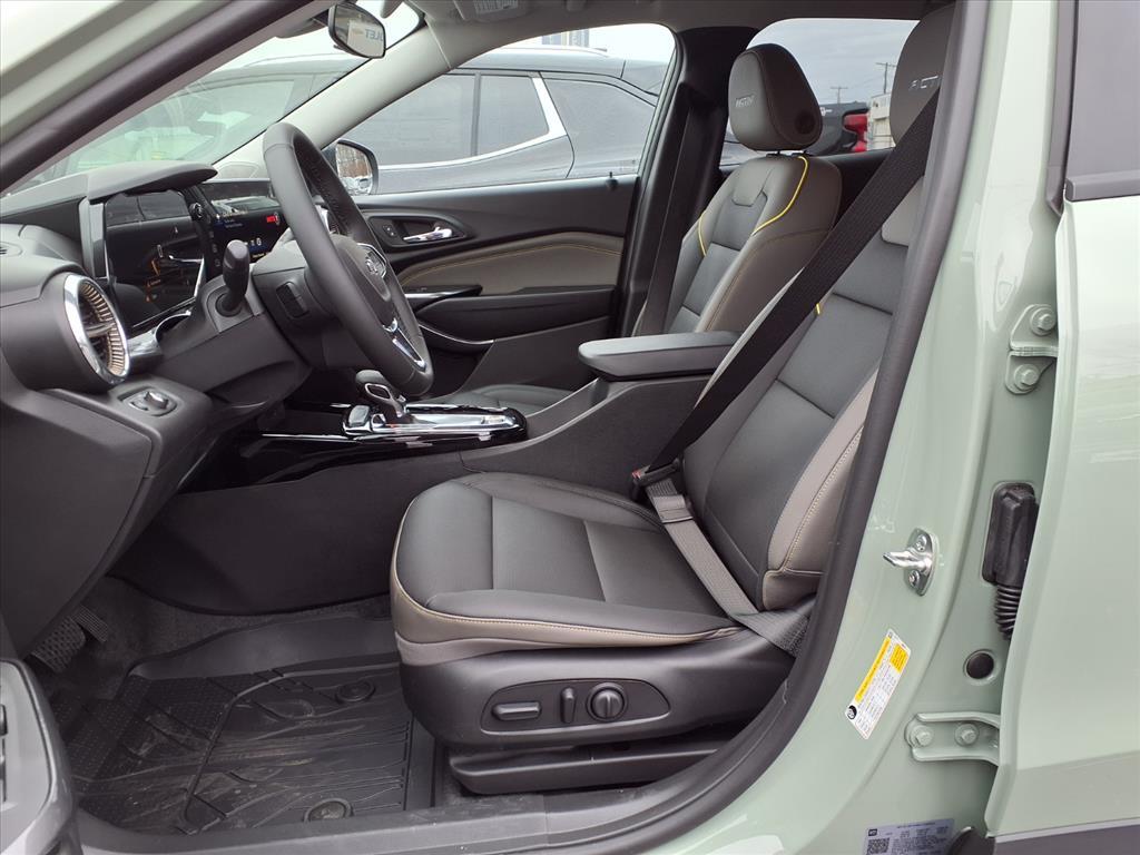 2026 Chevrolet Trax ACTIV 2-Way Adjustable Front Head Restraints, 2-Way Power Driver Lumbar Seat Adjuster, 3.50 Final Drive Axle Ratio, 4-Way Manual Front Passenger Seat Adjuster, 4-Wheel Disc Brakes, 6 Speakers, 6-Speaker Audio System Feature, 8-Way Power Driver Seat Adjuster, ABS brakes, Adaptive Cruise Control, Air Conditioning, Alloy wheels, AM/FM radio: SiriusXM, Auto High-beam Headlights, Automatic temperature control, Brake assist, Bumpers: body-color, Compass, Delay-off headlights, Driver Confidence Package, Driver door bin, Driver vanity mirror, Dual front impact airbags, Dual front side impact airbags, Electronic Stability Control, Emergency communication system: OnStar One Essentials, Evotex Seat Trim, Exterior Parking Camera Rear, Front and Rear Jet Black All-Weather Floor Liners, Front anti-roll bar, Front Bucket Seats, Front Center Armrest, Front reading lights, Front wheel independent suspension, Fully automatic headlights, Heated door mirrors, Heated Driver and Front Passenger Seats, Heated front seats, Heated steering wheel, Illuminated entry, Interior Protection Package, Jet Black Cargo Liner, Jet Black Cargo Net, Lane Change Alert with Side Blind Zone Alert, Leather steering wheel, Low tire pressure warning, Occupant sensing airbag, Outside temperature display, Overhead airbag, Overhead console, Panic alarm, Passenger door bin, Passenger vanity mirror, Power door mirrors, Power driver seat, Power steering, Power windows, Premium audio system: Chevrolet Infotainment 3, Radio data system, Radio: AM/FM Stereo Audio System, Rear Cross Traffic Alert, Rear Park Assist, Rear window defroster, Rear window wiper, Remote keyless entry, Security system, SiriusXM Trial Subscription, Speed control, Split folding rear seat, Spoiler, Steering wheel mounted audio controls, Tachometer, Telescoping steering wheel, Tilt steering wheel, Traction control, Trip computer, Variably intermittent wipers, Wheels: 18 Black-Painted Aluminum, Wireless Apple CarPlay/Wireless Android Auto. 28/32 City/Highway MPG