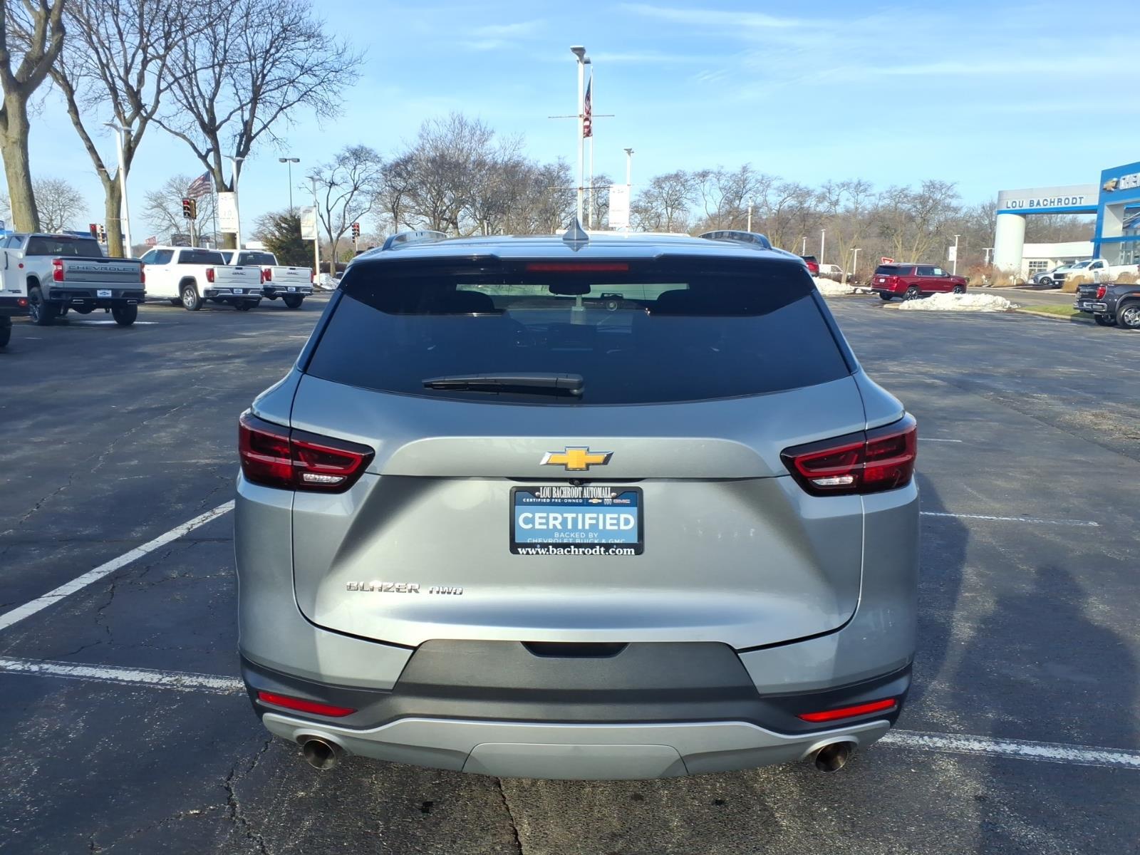 18/26 City/Highway MPG Recent Arrival! Clean CARFAX. Sterling Metallic 2024 Chevrolet Blazer LT 18/26 City/Highway MPG Certified. Chevrolet Certified Pre-Owned Details: * Warranty Deductible: $0 * 24 months/24,000 miles (whichever comes first) Certified Pre-Owned Scheduled Maintenance Plan and 3 days/150 miles (whichever comes first) Vehicle Exchange Program. SiriusXM 3-month trial subscription. * Powertrain Limited Warranty: 72 Month/100,000 Mile (whichever comes first) from original in-service date * Transferable Warranty * Roadside Assistance * 172 Point Inspection * Vehicle History * Limited Warranty: 12 Month/12,000 Mile (whichever comes first) from certified purchase date LT SHOP FROM HOME, FREE DELIVERY ANYWHERE WITHIN 250 MILES!, EASY FINANCING, FULLY SERVICED, BLUETOOTH/HANDS-FREE, BACK UP CAMERA, REMOTE START, HEATED SEATS, MULTI-ZONE CLIMATE CONTROL, PUSH BUTTON START, REMOTE KEYLESS ENTRY, AWD, 4-Wheel Disc Brakes, 6-Speaker Audio System Feature, 6-Way Power Front Passenger Seat Adjuster, 8-Way Power Driver Seat Adjuster, ABS brakes, AM/FM radio: SiriusXM with 360L, Apple CarPlay/Android Auto, Auto High-beam Headlights, Auto-dimming door mirrors, Auto-dimming Rear-View mirror, Automatic temperature control, Black Roof-Mounted Side Rails, Brake assist, Child-Seat-Sensing Airbag, Cruise Control, Driver Confidence Package, Dual front impact airbags, Dual front side impact airbags, Electronic Stability Control, Emergency communication system: OnStar and Chevrolet connected services capable, Four wheel independent suspension, Front anti-roll bar, Front dual zone A/C, Fully automatic headlights, Garage door transmitter, Heated door mirrors, Heated Driver & Front Passenger Seats, Heated front seats, Inside Rear-View Auto-Dimming Mirror, Knee airbag, Lane Change Alert w/Side Blind Zone Alert, Leather Shift Knob, Leather steering wheel, Low tire pressure warning, Occupant sensing airbag, Outside Heated Power-Adjustable Body-Color Mirrors, Overhead airbag, Perforated Leather-Appointed Seat Trim, Power driver seat, Power Liftgate, Power Panoramic Tilt-Sliding Sunroof, Power steering, Power windows, Preferred Equipment Group 3LT, Premium audio system: Chevrolet Infotainment 3 Plus, Radio: Chevrolet Infotainment 3 Plus System, Rear anti-roll bar, Rear Cross Traffic Alert, Rear Park Assist w/Audible Warning, Rear Power Programmable Liftgate, Rear window defroster, Rear window wiper, Remote keyless entry, Ride & Handling Suspension, Security system,