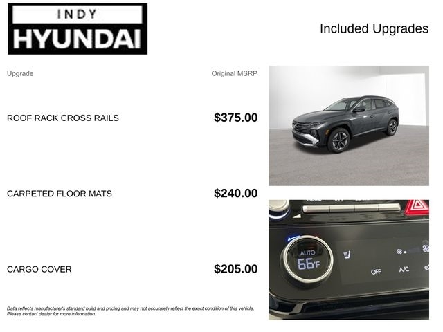 $1,450 off MSRP! Ecotronic Gray 2026 Hyundai Tucson SEL Back up Camera, Best place to buy a used car, Bluetooth, Buy a used car, New Hyundai dealership near me, New Hyundai for sale near me, Used car deals this weekend, Used car for sale, Used car special, Used car specials, Used cars near Indianapolis, Used cars near me, Tucson SEL, 4D Sport Utility, 2.5L I4 DGI DOHC 16V LEV3-SULEV30 187hp, 8-Speed Automatic with SHIFTRONIC, AWD, Ecotronic Gray, Gray Cloth. At Indy Hyundai in Indianapolis, IN, we offer a full lineup of new Hyundai vehicles for sale, including the latest Hyundai SUVs, sedans, and hybrid models. This new YEAR Hyundai MODEL TRIM delivers advanced technology, fuel efficiency, and modern design backed by Hyundai's industry-leading warranty. Proudly serving Indianapolis, Carmel, Fishers, Greenwood, and surrounding Indiana areas, we make it easy to upgrade into a new Hyundai. If you're searching for a new Hyundai near you or the best Hyundai deals in Indianapolis, contact Indy Hyundai today to confirm availability and schedule your test drive. AWD 8-Speed Automatic with SHIFTRONIC 2.5L I4 DGI DOHC 16V LEV3-SULEV30 187hp 24/30 City/Highway MPG Vehicle description, options, price and trim may not be accurate due to automated processes. Bob Rohrmans Indy Hyundai proudly selling and servicing New, Used, Pre-owned and certified vehicles in and around Indianapolis Indiana, and surrounding central Indiana. We stock all makes and models of used SUVs, cars and trucks. We even offer budget vehicles under $5k. Hyundai, Kia, Honda, GM, Chrysler, Ford, Toyota, Chevrolet, Buick, GMC, Dodge, Ram, Acura, Subaru, Lexus. Price includes: $1,450 - Exp. 04/30/2026