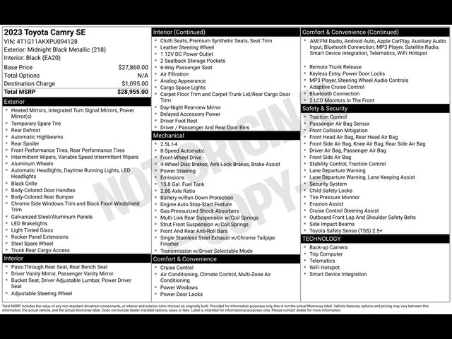 Back up Camera, Best place to buy a used car, Bluetooth, Buy a used car, New Hyundai dealership near me, New Hyundai for sale near me, Used car deals this weekend, Used car for sale, Used car special, Used car specials, Used cars near Indianapolis, Used cars near me, Camry SE, 4D Sedan, 2.5L I4 DOHC 16V, 8-Speed Automatic, FWD, Midnight Black Metallic, Black Cloth. Priced below KBB Fair Purchase Price! CARFAX One-Owner. Midnight Black Metallic 2023 Toyota Camry FWD SE 2.5L I4 DOHC 16V Odometer is 34197 miles below market average! Discover Your Perfect Vehicle at Bob Rohrman's Indy Hyundai - Indianapolis' Leading Dealership for New, Used, and Certified Pre-Owned Cars, SUVs, and Trucks Looking for your next car At Bob Rohrman's Indy Hyundai, we offer an unmatched selection of new, used, and certified pre-owned vehicles in Indianapolis, Indiana. Whether you're after a spacious SUV, a rugged truck, or an efficient car, we've got all makes and models to suit your lifestyle. Shopping with us is easy-our team is dedicated to helping you find the perfect vehicle and making your car-buying experience smooth and hassle-free. With a great inventory and competitive pricing, we proudly serve customers throughout central Indiana. Stop by today for the best deals in town or explore our online inventory now.Disclaimer: Vehicle descriptions, options, and trim levels may not be accurate due to automated processes.