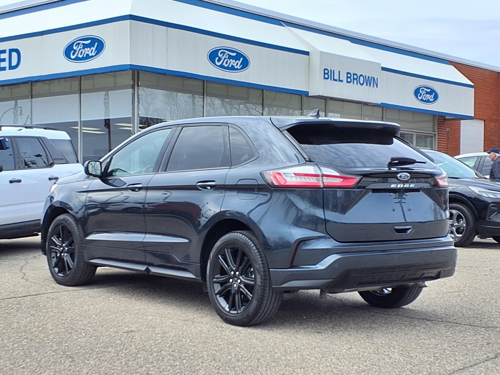 The Ford Edge ST-Line is a 2024 model car that has been driven 28,094 miles and is certified pre-owned. It features an all wheel drive, 2.0 liter EcoBoost Turbo I4 250hp 275 lb-ft engine with direct injection, and a stone blue c8 exterior. The car's fuel economy in city is 21 mpg and fuel economy on highway is 28 mpg, while its navy pier w/orange stitching interior provides a comfortable ride. With a crash test rating of 5 out of 5 stars, this car offers peace of mind for drivers. Additionally, it comes equipped with many features such as touch screen display, Bluetooth audio connection, blind spot sensor, hill start assist, on demand four wheel drive, and leather seats. The Ford Edge ST-Line is sure to make any driver happy! Call Bill Brown Ford Pre-owned at (734) 522-0030 to confirm availability and schedule a no-obligation test drive!