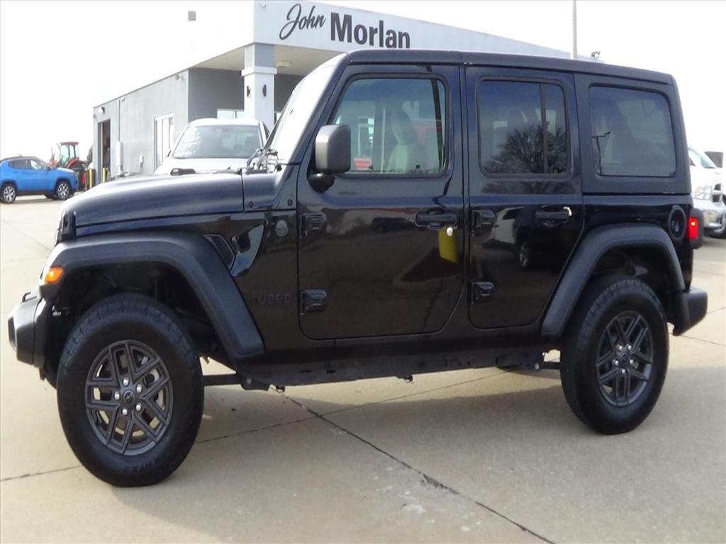Thank you for considering John Morlan Chrysler! We are a family owned dealership and take pride in taking excellent care of our customers and offering world class customer service. This 2024 Jeep Wrangler Sport S Vehicle is a 4x4 with a 3.6L V6 285hp 260 lb-ft engine, sequential port fuel injection, and low mileage of 8,871 miles. It has a black clear coat (px8) exterior and a black interior with Hill Start Assist and Part Time Four Wheel Drive. This Vehicle has an impressive fuel economy of 16 mpg in the city and 22 mpg on the highway, making it an ideal choice for those who want to save money on gas. Vehicle features include Hill Start Assist and Part Time Four Wheel Drive to make your driving experience even more enjoyable. We appreciate the opportunity to serve you and look forward to hearing from you today.