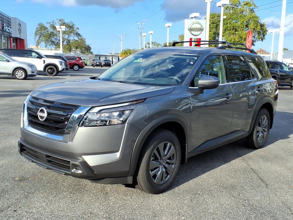 Gun Metallic 2025 Nissan Pathfinder SV FWD 9-Speed Automatic 3.5L V6 DOHC 20/27 City/Highway MPG This Vehicle Features SV Premium Package (2nd-Row Captain Chairs, 2nd-Row Rear Headrest, Panoramic Moonroof, and Tow Hitch Receiver and Harness), 3rd row seats: bench, 4-Wheel Disc Brakes, 6 Speakers, ABS brakes, Air Conditioning, Alloy wheels, AM/FM radio: SiriusXM, Auto High-beam Headlights, Automatic temperature control, Brake assist, Bumpers: body-color, Captains Chairs Carpeted Floor Mats (set of 4), Cloth Seating Surfaces, Cross Bars, Delay-off headlights, Driver door bin, Driver vanity mirror, Dual front impact airbags, Dual front side impact airbags, Electronic Stability Control, Emergency communication system, Four wheel independent suspension, Front anti-roll bar, Front Bucket Seats, Front Center Armrest, Front dual zone A/C, Front reading lights, Fully automatic headlights, Heated door mirrors, Heated Front Bucket Seats, Heated front seats, Illuminated entry, Knee airbag, Leather steering wheel, Low tire pressure warning, NissanConnect featuring Apple CarPlay and Android Auto, Occupant sensing airbag, Outside temperature display, Overhead airbag, Overhead console, Panic alarm, Passenger door bin, Passenger vanity mirror, Power door mirrors, Power driver seat, Power Liftgate, Power steering, Power windows, Radio data system, Radio: AM/FM Audio System with NissanConnect, Rear air conditioning, Rear anti-roll bar, Rear Parking Sensors, Rear reading lights, Rear seat center armrest, Rear side impact airbag, Rear window defroster, Rear window wiper, Reclining 3rd row seat, Remote keyless entry, Security system, Speed control, Speed-sensing steering, Split folding rear seat, Spoiler, Steering wheel mounted audio controls, Tachometer, Telescoping steering wheel, Tilt steering wheel, Traction control, Trip computer, Turn signal indicator mirrors, Variably intermittent wipers, and Wheels: 18x 8J Painted Alloy. Price includes: $5000 - Nissan Customer Cash. Exp. 01/05/2026