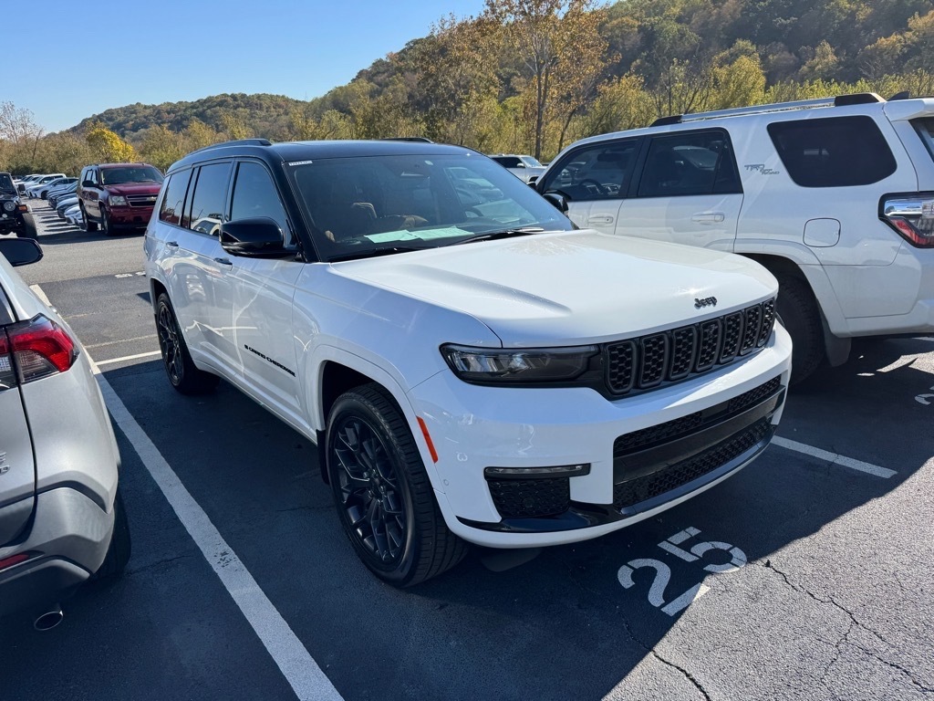 Clean CARFAX. Save big this month on well performing vehicles from us, here at Toyota Of Kingsport. 2025 Jeep Grand Cherokee L 3.6L V6 24V VVT Summit Bright White ClearcoatOdometer is 6862 miles below market average!Come see us at Toyota / Lexus of Kingsport! Where SAVING people money is a Hill Family Tradition!!Advanced Protech Group IV (Heads-Up Display, Interior Rear Facing Camera, Night Vision/Pedestrian-Animal Detection, Rearview Autodim Digital Display Mirror, and Windshield Wiper De-Icer), Luxury Tech Group V (2nd Row Manual Window Shades and Wireless Charging Pad), Quick Order Package 23U Summit Reserve (19 Speakers High Performance Audio, 950 Watt Amplifier, Active Noise Control System, Deluxe Headliner, Front Passenger Interactive Display, Palermo Leather Door Trim, Palermo Leather Seats, Summit, Summit Badge, Ventilated Rear Seats, and Wheels: 21 x 9.0 Machined Face/Painted Aluminum), 10 Speakers, 3.45 Rear Axle Ratio, 3rd row seats: split-bench, 4-Wheel Disc Brakes, ABS brakes, Adaptive suspension, Air Conditioning, Alloy wheels, AM/FM radio: SiriusXM with 360L, Anti-whiplash front head restraints, Audio memory, Auto High-beam Headlights, Auto-dimming door mirrors, Auto-dimming Rear-View mirror, Auto-leveling suspension, Automatic temperature control, Brake assist, Bumpers: body-color, Compass, Delay-off headlights, Driver door bin, Driver vanity mirror, Dual front impact airbags, Dual front side impact airbags, Electronic Stability Control, Emergency communication system, Four wheel independent suspension, Front anti-roll bar, Front Bucket Seats, Front Center Armrest w/Storage, Front dual zone A/C, Front fog lights, Front reading lights, Fully automatic headlights, Garage door transmitter, Genuine wood dashboard insert, Genuine wood door panel insert, Gloss Black Exterior Accents, Heated door mirrors, Heated front seats, Heated rear seats, Heated steering wheel, Illuminated entry, Knee airbag, Leather steering wheel, Low tire pressure warning, Memory seat, Model Year Tracking, Nappa Leather Seats, Navigation System, Neutral Gray Exterior Accents, Normal Duty Suspension, Occupant sensing airbag, Outside temperature display, Overhead airbag, Overhead console, Painted Door Cladding, Panic alarm, Passenger door bin, Passenger vanity mirror, Power door mirrors, Power driver seat, Power Fold Seatbacks, Power Liftgate, Power moonroof, Power passenger seat, Power steering, Power windows, Radio data system, Rain sensing wipers,