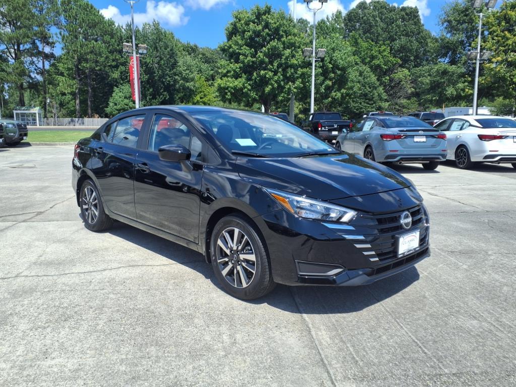 Super Black Metallic 2025 Nissan Versa 1.6 SV FWD CVT 1.6L I4 DOHC 16V We Deliver Anywhere, Extended Service Programs Available, 16Aluminum Alloy Wheels, 4 Speakers, ABS brakes, Air Conditioning, Alloy wheels, Apple CarPlay/Android Auto, Auto High-beam Headlights, Blind Spot Warning, Brake assist, Bumpers: body-color, Carpeted Floor Mats & Trunk Mat (5-Piece Set), Delay-off headlights, Driver door bin, Driver vanity mirror, Dual front impact airbags, Dual front side impact airbags, Electronic Stability Control, Front anti-roll bar, Front Bucket Seats, Front Center Armrest, Front reading lights, Front wheel independent suspension, Fully automatic headlights, Heated door mirrors, Illuminated entry, Knee airbag, Low tire pressure warning, Occupant sensing airbag, Outside temperature display, Overhead airbag, Panic alarm, Passenger door bin, Passenger vanity mirror, Power door mirrors, Power steering, Power windows, Radio data system, Radio: AM/FM Audio System, Rear Parking Sensors, Rear side impact airbag, Rear window defroster, Remote keyless entry, Shopping Bag Hooks, Speed control, Splash Guards, Split folding rear seat, Steering wheel mounted audio controls, Tachometer, Telescoping steering wheel, Tilt steering wheel, Traction control, Trip computer, Trunk Net, Trunk Package, Upgraded Cloth Seat Trim, USB Charging Cable Set, Variably intermittent wipers. Recent Arrival! 32/40 City/Highway MPG