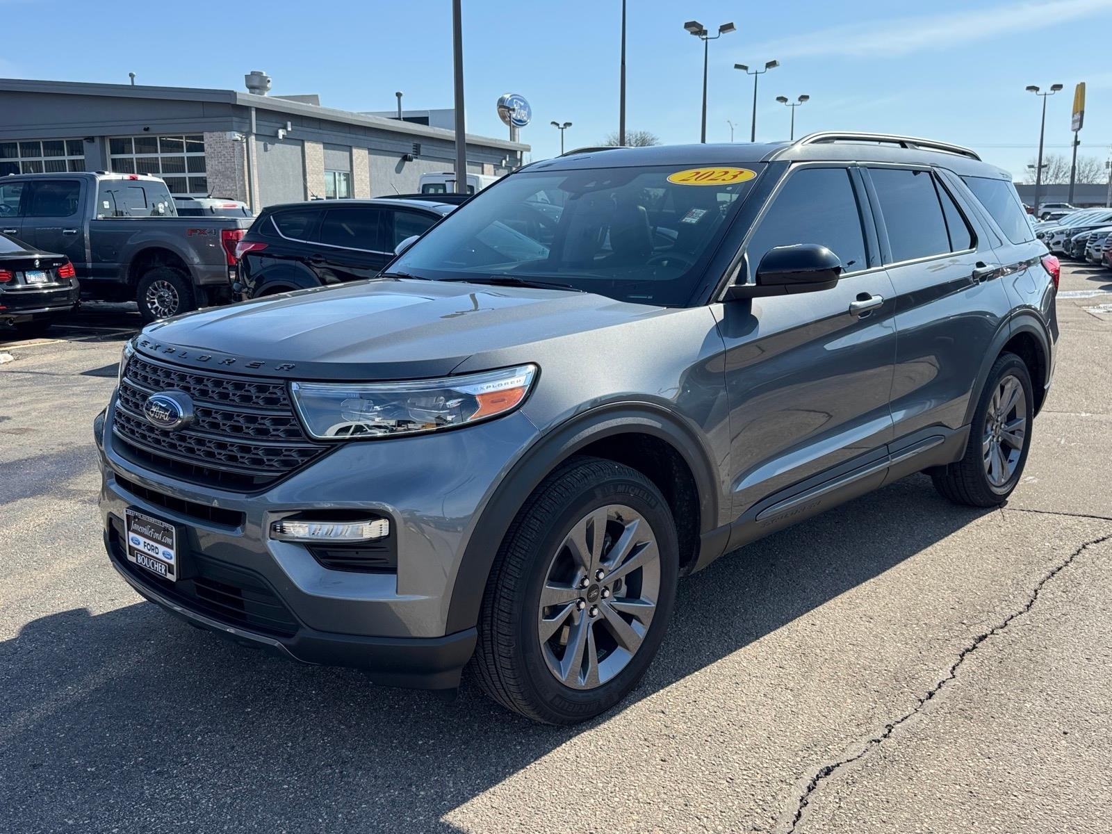 Recent Arrival! Clean CARFAX. CARFAX One-Owner. **Local Trade**, *All Service work completed at Gordie Boucher Ford!!*, Experience the perfect blend of comfort, capability, and style in the 2023 Ford Explorer XLT, a versatile SUV built for family adventures and everyday driving. Powered by a responsive engine with smooth automatic transmission and available Intelligent 4WD, it delivers confident performance in any condition. This XLT comes loaded with the XLT Sport Appearance Package, twin-panel moonroof, heated steering wheel, power liftgate, and trailer tow package for added convenience and capability. Inside, enjoy a spacious cabin with seating for up to seven, SYNC 3 infotainment, navigation, Apple CarPlay, Android Auto, and remote start. Advanced safety features including Ford Co-Pilot360, adaptive cruise control, blind-spot monitoring, and lane-keeping assist provide peace of mind, making the Explorer XLT a stylish, practical, and tech-savvy SUV ready for any journey.. This vehicle is covered by Ford's GOLD Certified Program and includes a 12-month/12,000-Mile Comprehensive Warranty, 7-year/100,000-Mile Powertrain Warranty, 4-Day Vehicle Exchange Program, 24-Hour Roadside Assistance, Local Home Delivery, and much more! Price excludes tax, title, license, service fee.