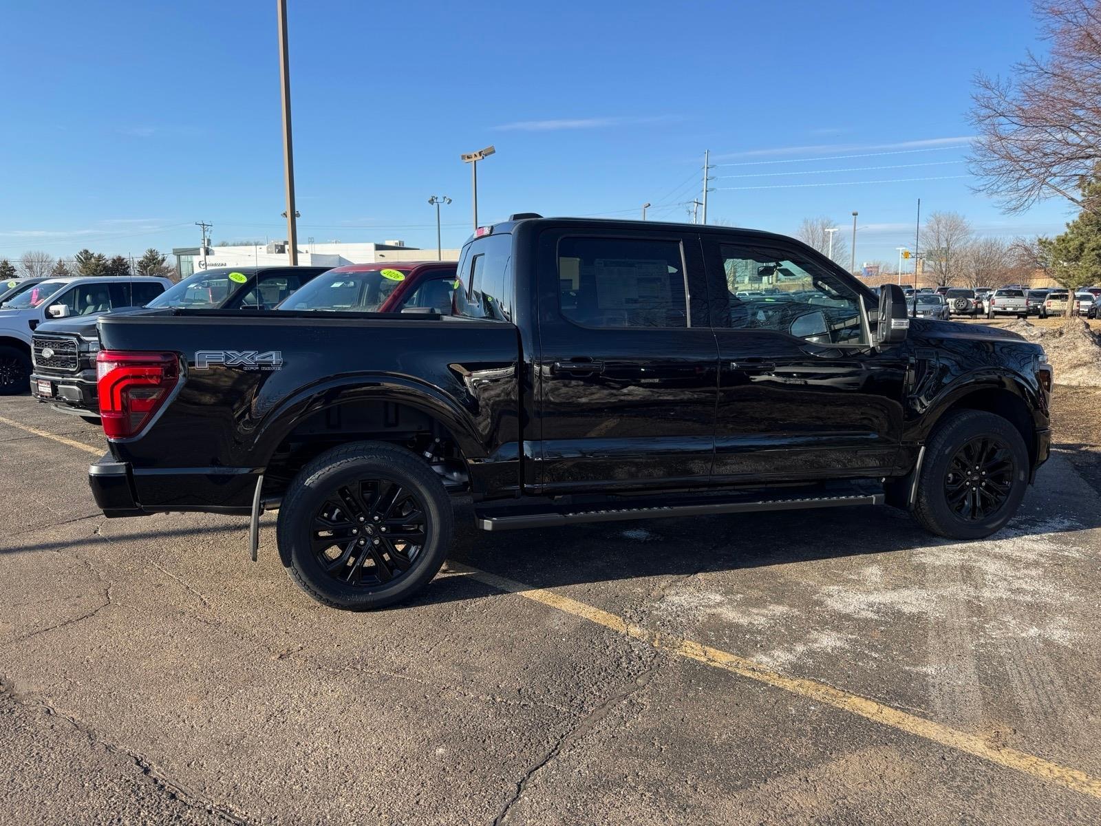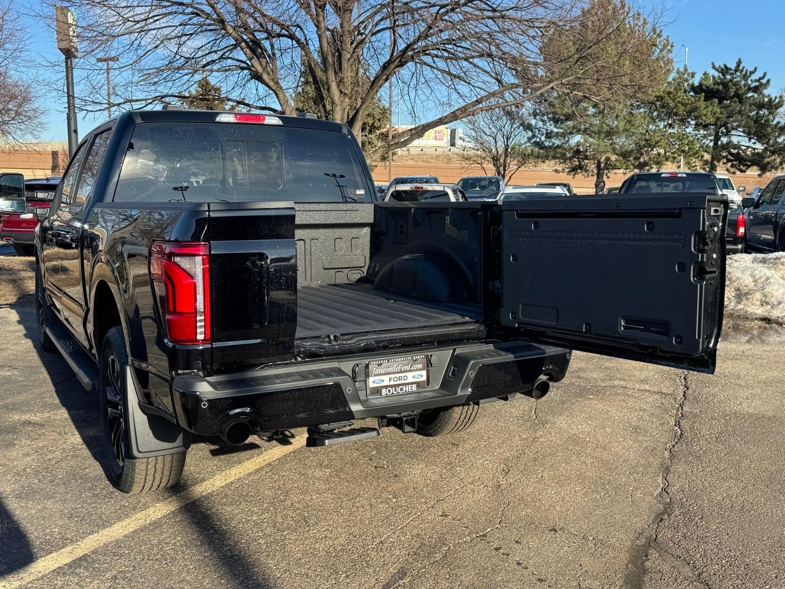 Recent Arrival! 2nd Row Heated Seats, 3.31 Axle Ratio, 4 Pickup Box Tie-Down Plates, 4x4 FX4 Off-Road Bodyside Decal, ActiveX Trimmed Bucket Seats, Ambient Lighting - Ice Blue Color Only, Bed Storage Boxes, Bed Utility Package, Black Exterior Badging, Black Grille, Black Taillamp Bezels, Body-Color Front and Rear Bumpers, Console Worksurface, Dark Interior Appliques, Equipment Group 502A High, Ford Connectivity Package (1-Year Included), Ford Connectivity Package (one-Time Purchase - 7 Years), FX4 Off-Road Package, Gray Box Side Decal, Head-Up Display, Hill Descent Control, Illuminated Driver and Passenger Visors, Integrated Trailer Brake Controller, Internet access capable: 5G Modem - Ford Connectivity Package, Lariat Black Appearance Package, LED Box Lighting, Matte Black Tailgate F-150 Decal, Mobile Office Package, Monotube Rear Shocks, Navigation system: Connected Navigation, Off-Road Tuned Front Shock Absorbers, Partitioned Lockable Rear Storage, Power-Adjustable Pedals with Memory, Power-Sliding Rear Window, Radio: B&O Unleashed Sound System by Bang & Olufsen, Rock Crawl Mode, Tailgate Step with Work Surface, Tow/Haul Package, Tray Style Floor Liner Without Carpet Mats, Twin Panel Moonroof, Wheels: 20Chrome-Like PVD, Wireless Charging. As with all new Fords, this vehicle includes a Ford 3-Year / 36,000 Mile Comprehensive Warranty, 5 Year / 60,000 Mile Powertrain Warranty, Roadside Assistance. Manufacturer Suggested Retail Price may not reflect the actual sale price. Price excludes tax, title, license, $499 service fee. All customers qualify for the price listed above. You may qualify for additional conditional offers that may lower your price; ask us for details. All offers are subject to change after month-end so come visit us and test-drive this vehicle today!