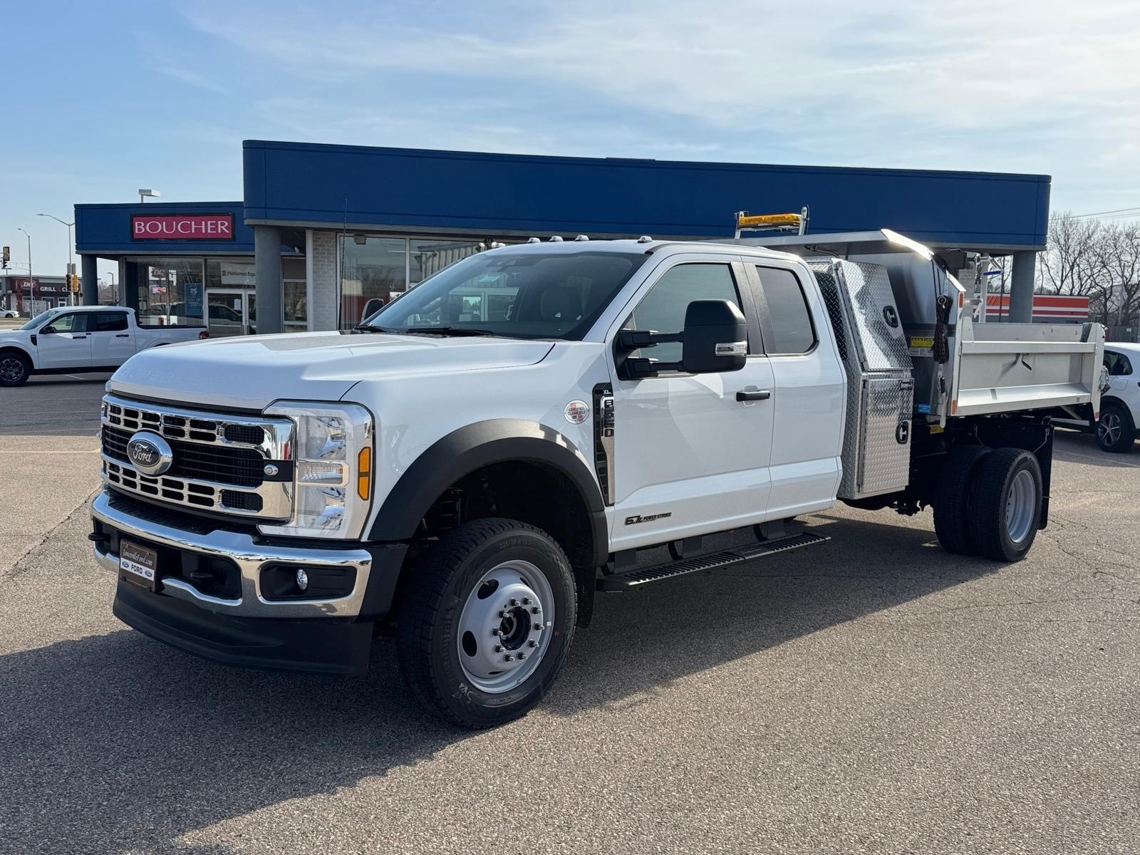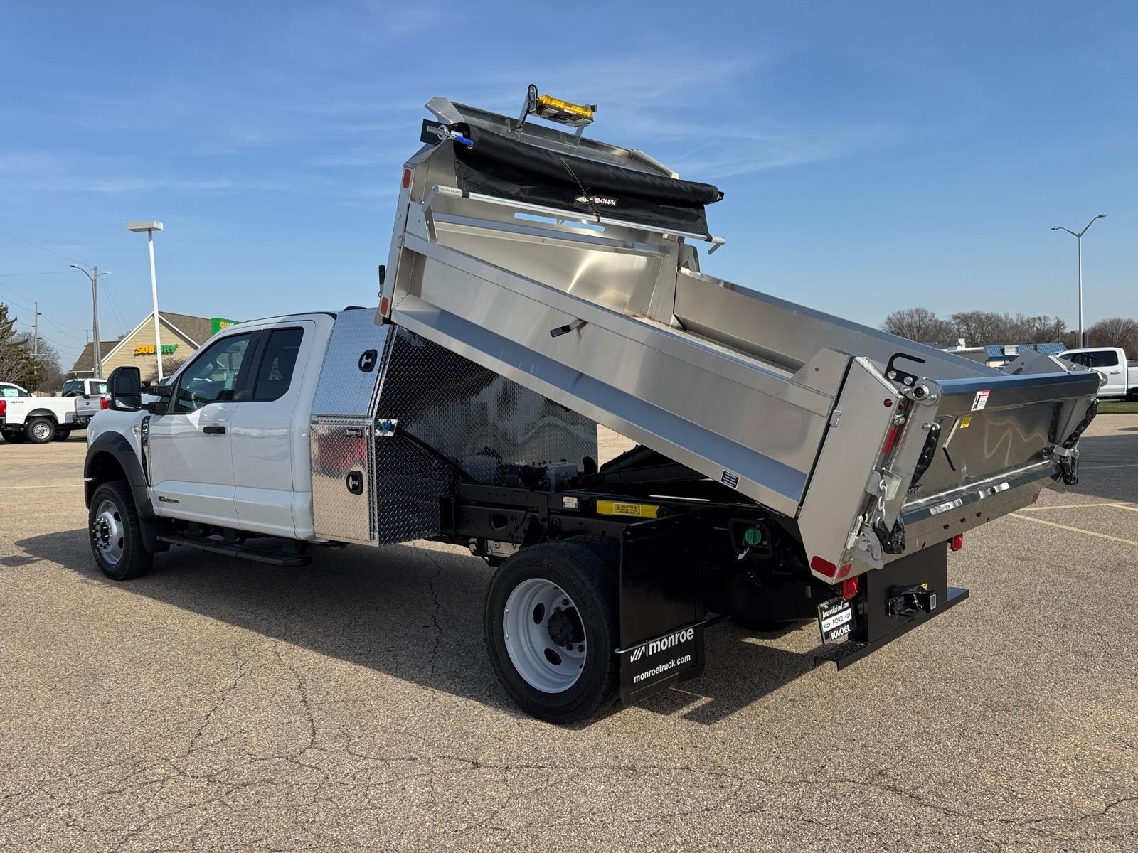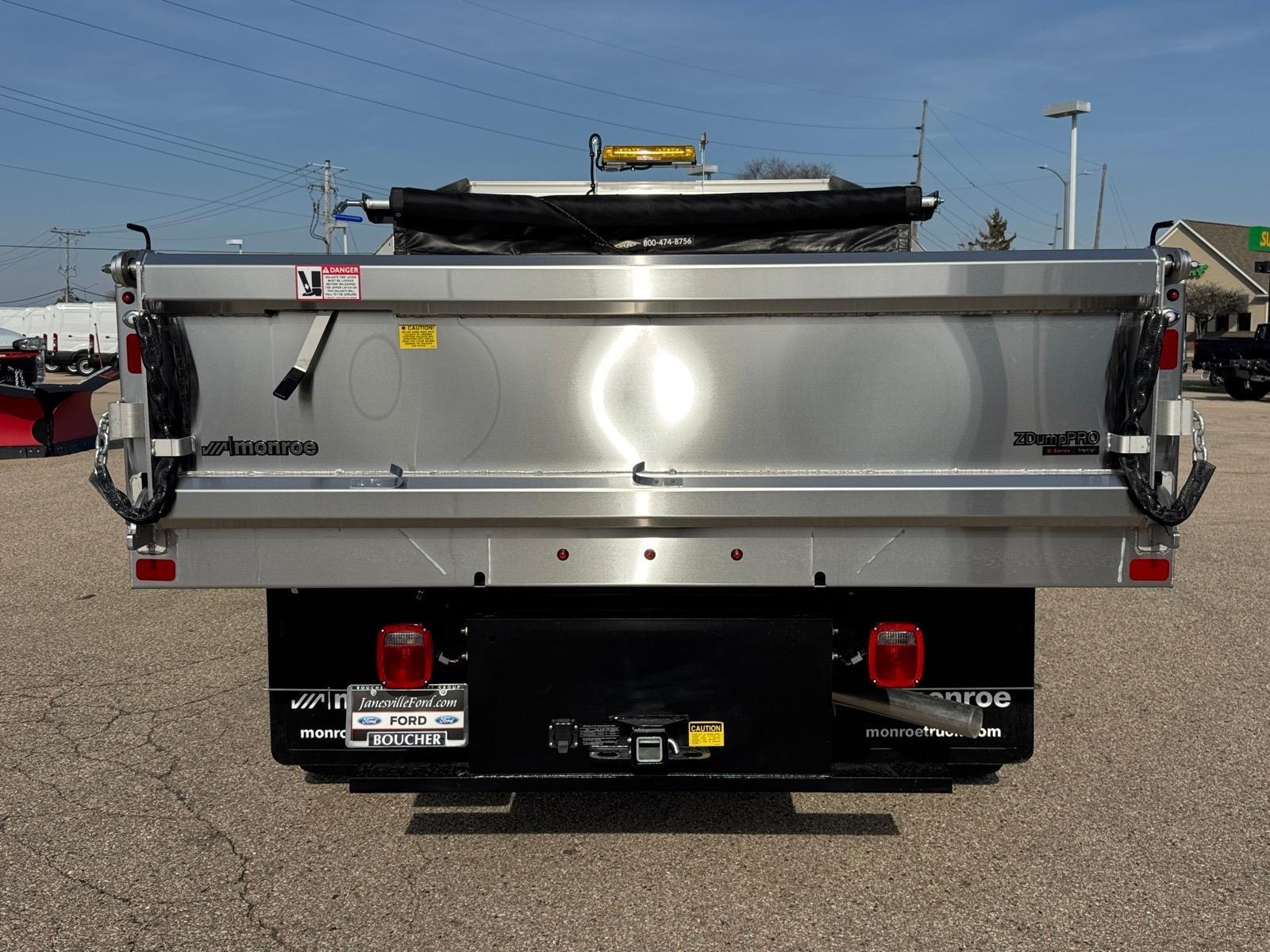 Recent Arrival! STAINLESS STEEL 3-4 YD DUMP BODY WITH BACKPACK STORAGE!, 4.88 Axle Ratio, Bright Grille, Chrome Front Bumper, Ford Connectivity Package (1-Year Included), GVWR: 18,000 lbs Payload Package, GVWR: 19,550 Lb Payload Plus Upgrade Package 2, Halogen Fog Lamps, HD Vinyl 40/20/40 Split Bench Seat, High Capacity Trailer Tow Package, Internet access capable: 5G Modem - Ford Connectivity Package, Order Code 660A, Privacy Glass with Power Sliding Rear Glass, Radio: AM/FM Stereo with MP3 Player, Rear Window Defroster, Remote Start, Snow Plow Prep Package, SYNC 4, Wheels: 19.5x 6Argent Painted Steel, XL Chrome Package. As with all new Fords, this vehicle includes a Ford 3-Year / 36,000 Mile Comprehensive Warranty, 5 Year / 60,000 Mile Powertrain Warranty, Roadside Assistance. Manufacturer Suggested Retail Price may not reflect the actual sale price. Price excludes tax, title, license, $499 service fee. All customers qualify for the price listed above. You may qualify for additional conditional offers that may lower your price; ask us for details. All offers are subject to change after month-end so come visit us and test-drive this vehicle today!