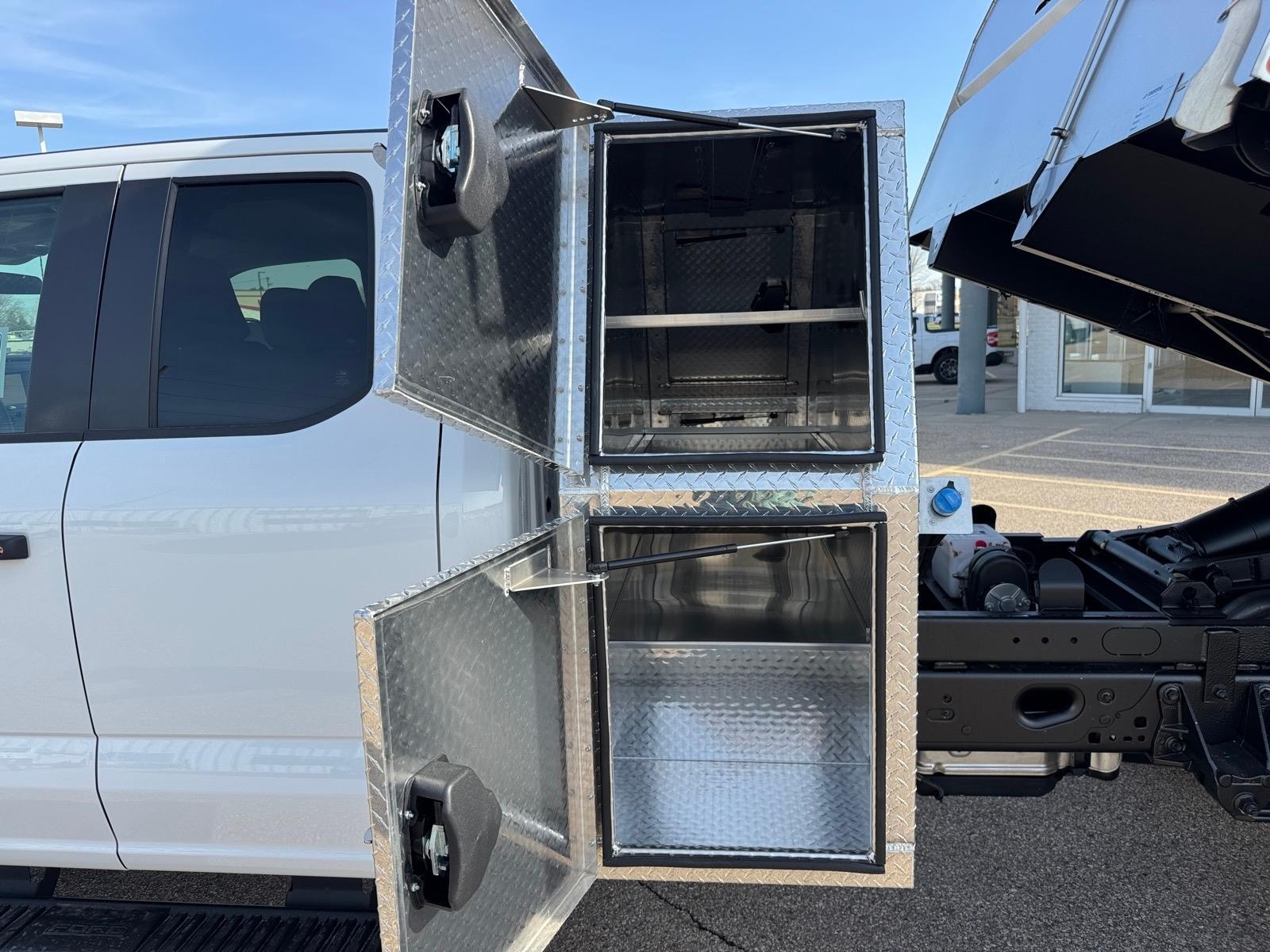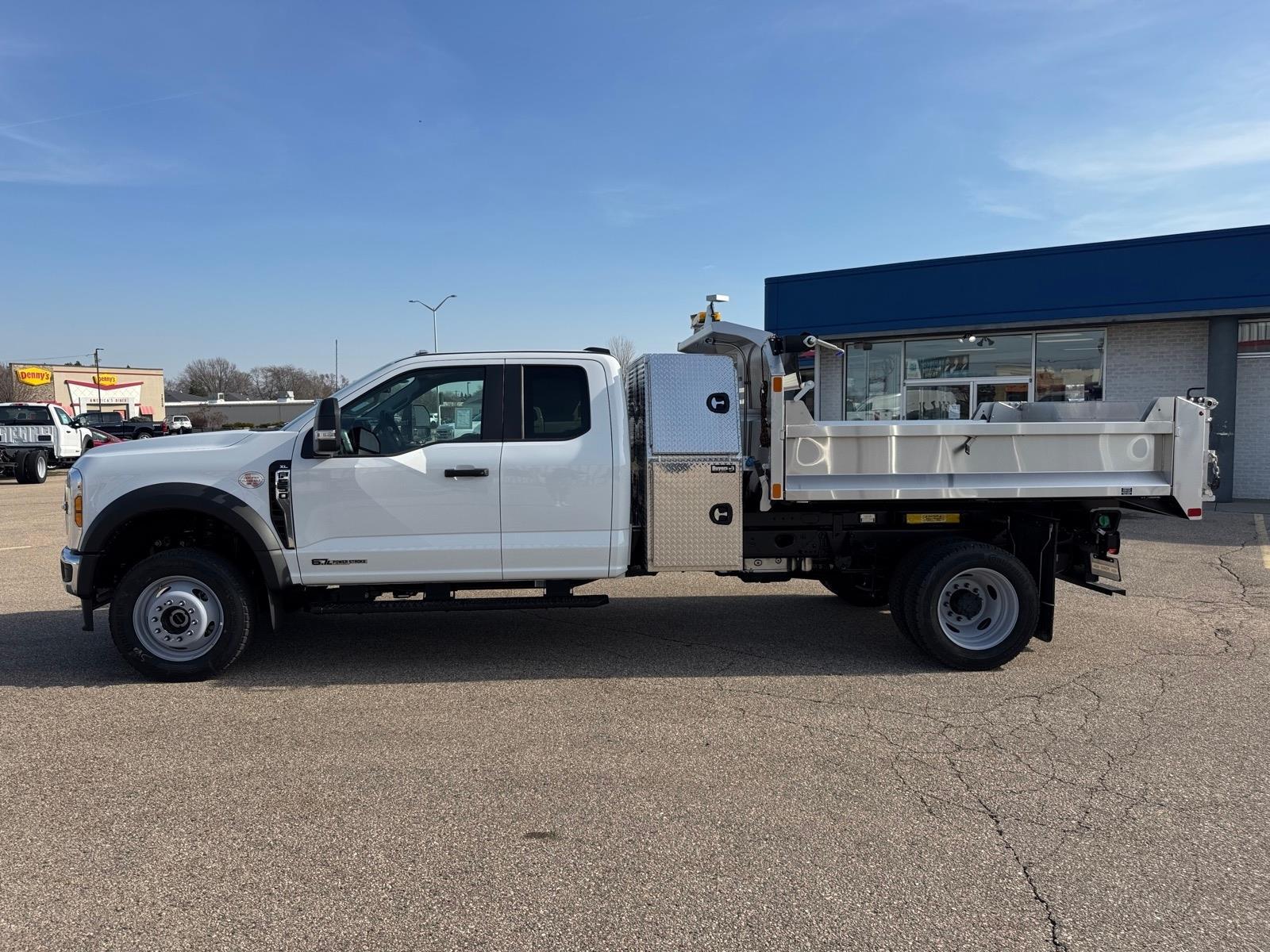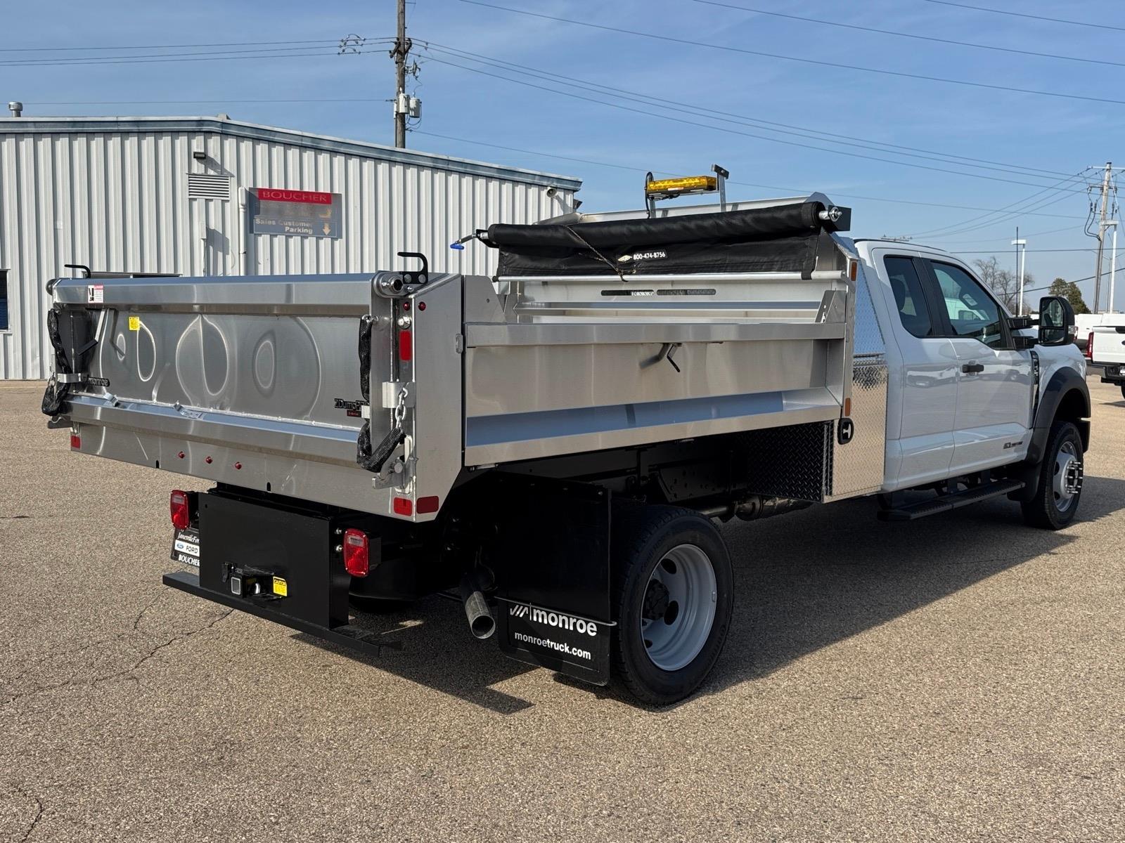 Recent Arrival! STAINLESS STEEL 3-4 YD DUMP BODY WITH BACKPACK STORAGE!, 4.88 Axle Ratio, Bright Grille, Chrome Front Bumper, Ford Connectivity Package (1-Year Included), GVWR: 18,000 lbs Payload Package, GVWR: 19,550 Lb Payload Plus Upgrade Package 2, Halogen Fog Lamps, HD Vinyl 40/20/40 Split Bench Seat, High Capacity Trailer Tow Package, Internet access capable: 5G Modem - Ford Connectivity Package, Order Code 660A, Privacy Glass with Power Sliding Rear Glass, Radio: AM/FM Stereo with MP3 Player, Rear Window Defroster, Remote Start, Snow Plow Prep Package, SYNC 4, Wheels: 19.5x 6Argent Painted Steel, XL Chrome Package. As with all new Fords, this vehicle includes a Ford 3-Year / 36,000 Mile Comprehensive Warranty, 5 Year / 60,000 Mile Powertrain Warranty, Roadside Assistance. Manufacturer Suggested Retail Price may not reflect the actual sale price. Price excludes tax, title, license, $499 service fee. All customers qualify for the price listed above. You may qualify for additional conditional offers that may lower your price; ask us for details. All offers are subject to change after month-end so come visit us and test-drive this vehicle today!