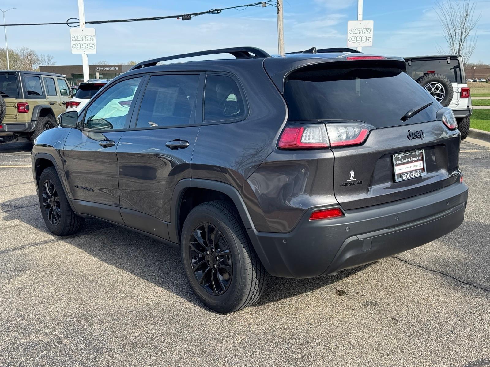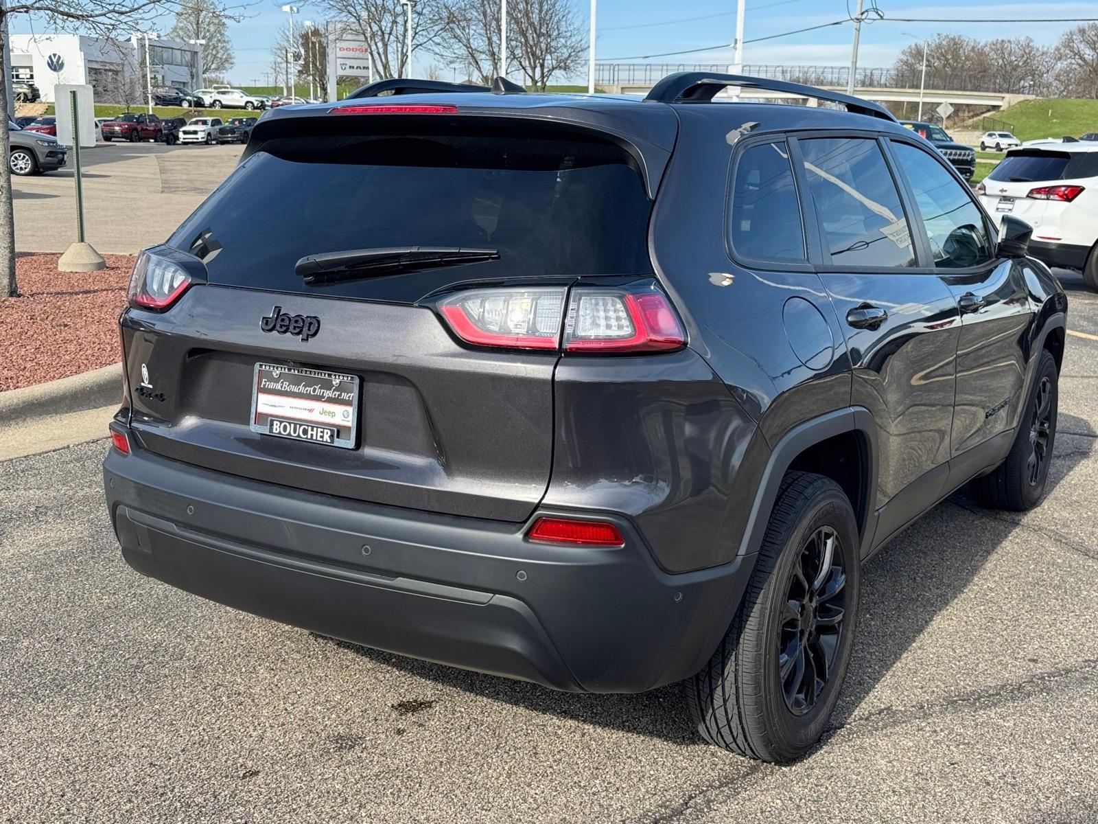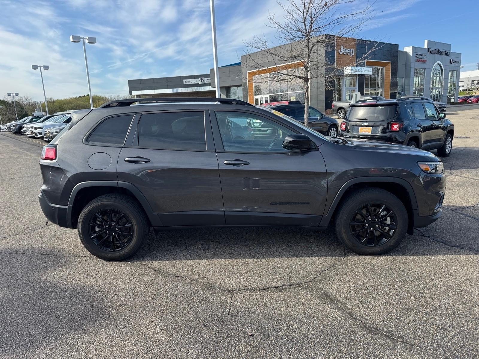 2023 Jeep Cherokee Altitude CARFAX One-Owner. Clean CARFAX. This one owner local trade has been fully inspected by our factory trained technicians and is backed by Jeeps 7yr/100,000 mile certified warranty! If you need extra space, want the safety of 4WD, but dont want to sacrifice fuel economy; look no further!, Alloy wheels, Automatic temperature control, Compass, Front dual zone A/C, Front fog lights, Fully automatic headlights, Heated front seats, Heated steering wheel, Leather Shift Knob, Navigation System, Outside temperature display, ParkView Rear Back-Up Camera, Power Liftgate, Power passenger seat, Premium Leather Trimmed Bucket Seats, Remote keyless entry, Split folding rear seat, Steering wheel mounted audio controls. This vehicle is a Jeep Factory Certified Vehicle! It includes a 120 point inspection, up to a 7 year or 100,000 mile powertrain warranty, Roadside Assistance, 3 months MaxCare Coverage, Complimentary 3 months SiriusXM Satellite Radio subscription and more! Please see our Sales Department for details! Price excludes tax, title, license, service fee.