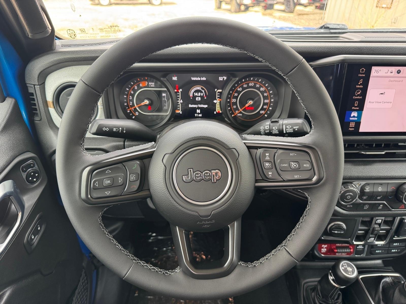 manual-shift Wrangler built for drivers who want authentic Jeep capability with the right factory upgrades. Finished in bold Hydro Blue Pearl-Coat...