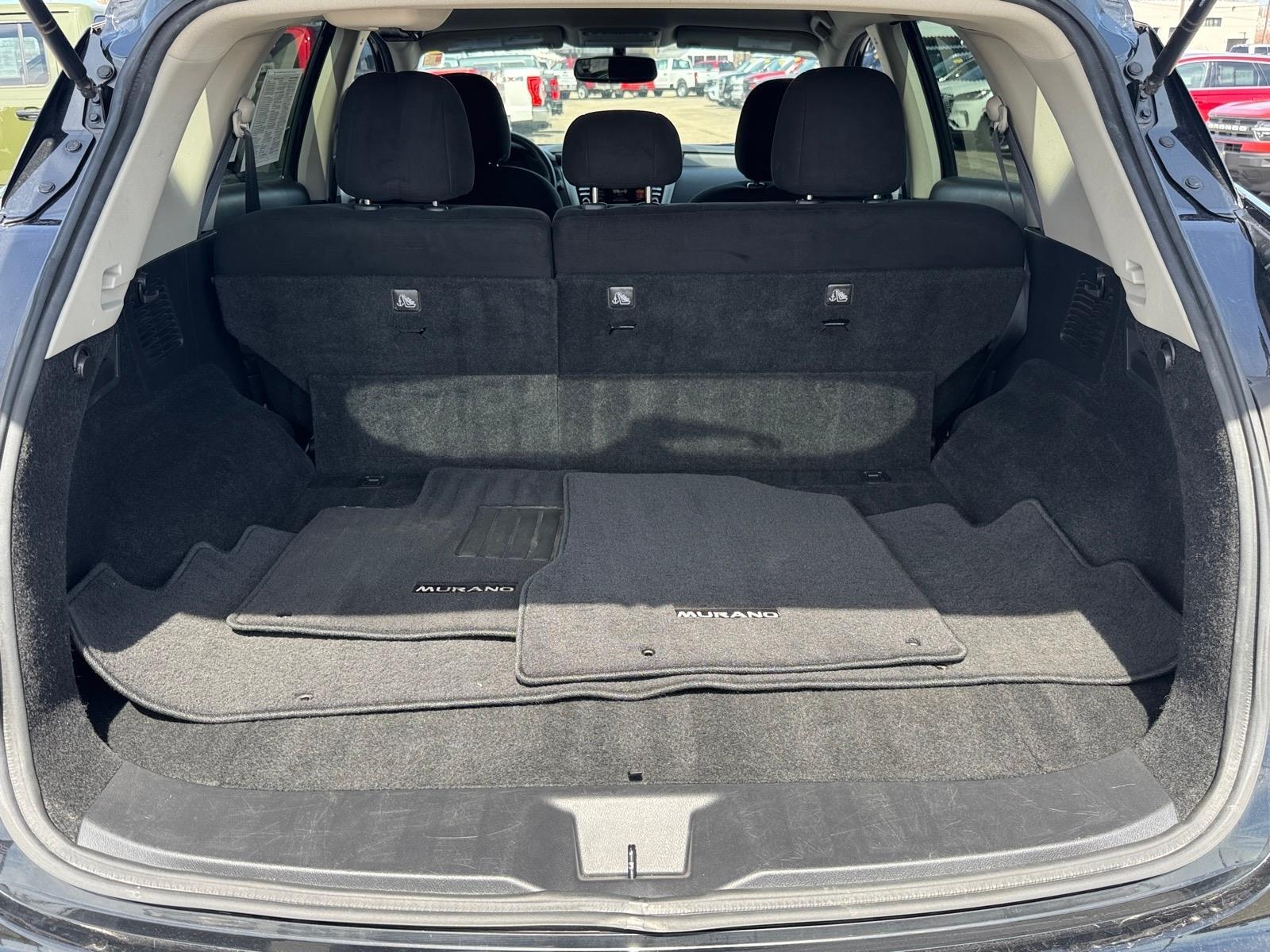 The new Murano's cargo area has been reconfigured to provide a projected best storage space in the segment (with seats up). The rear cargo area, for example, accommodates four large suitcases, while the rear seats fold flat for greater cargo convenience. With the easy rear seat release and available power rear seat return, Murano converts from people hauler to cargo ship or back within seconds. All configurations can be done from the back, with no walking to each door.